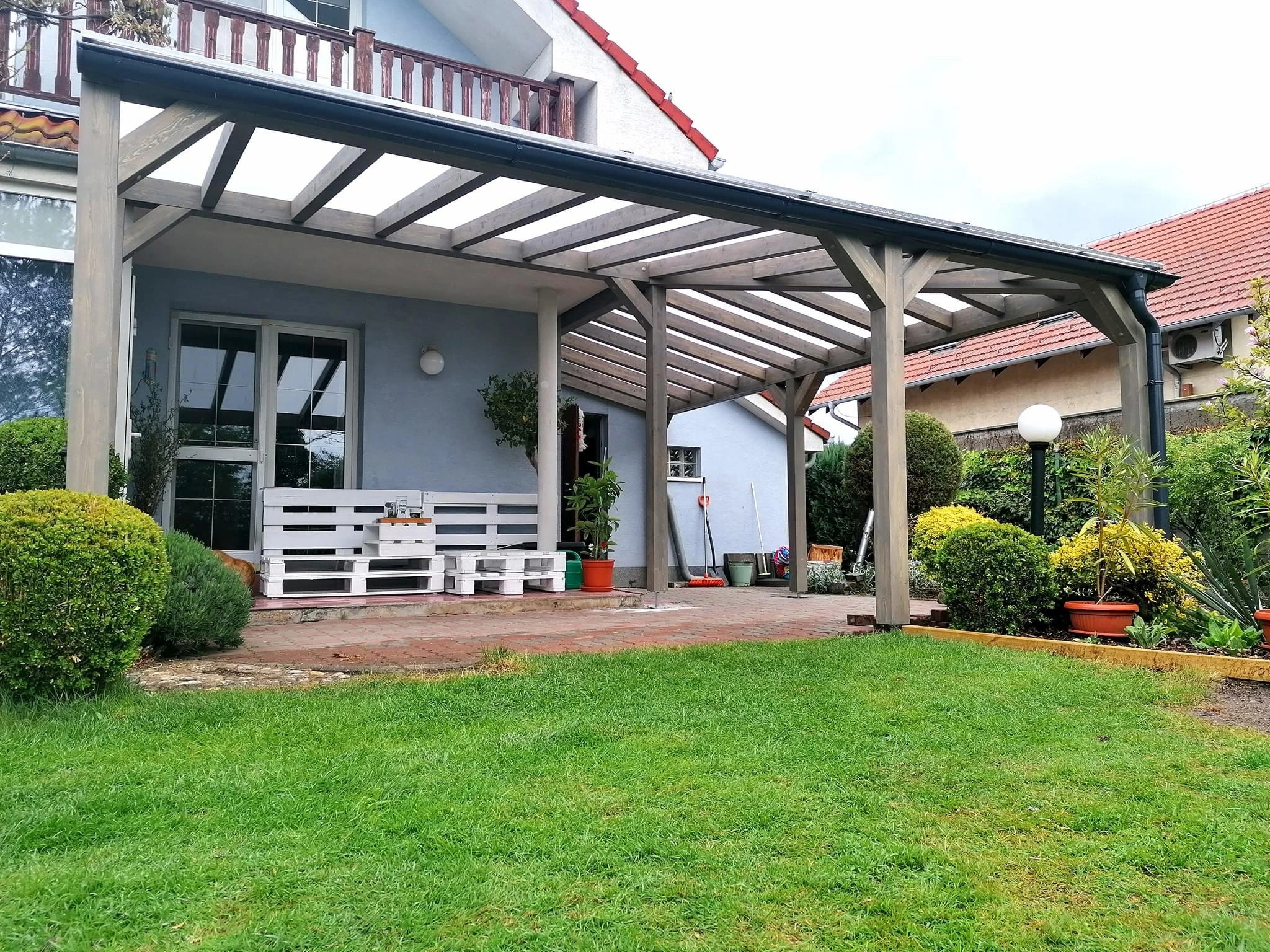 Krytina: polykarbonát – komorový alebo plný (viaceré hrúbky/odtiene).