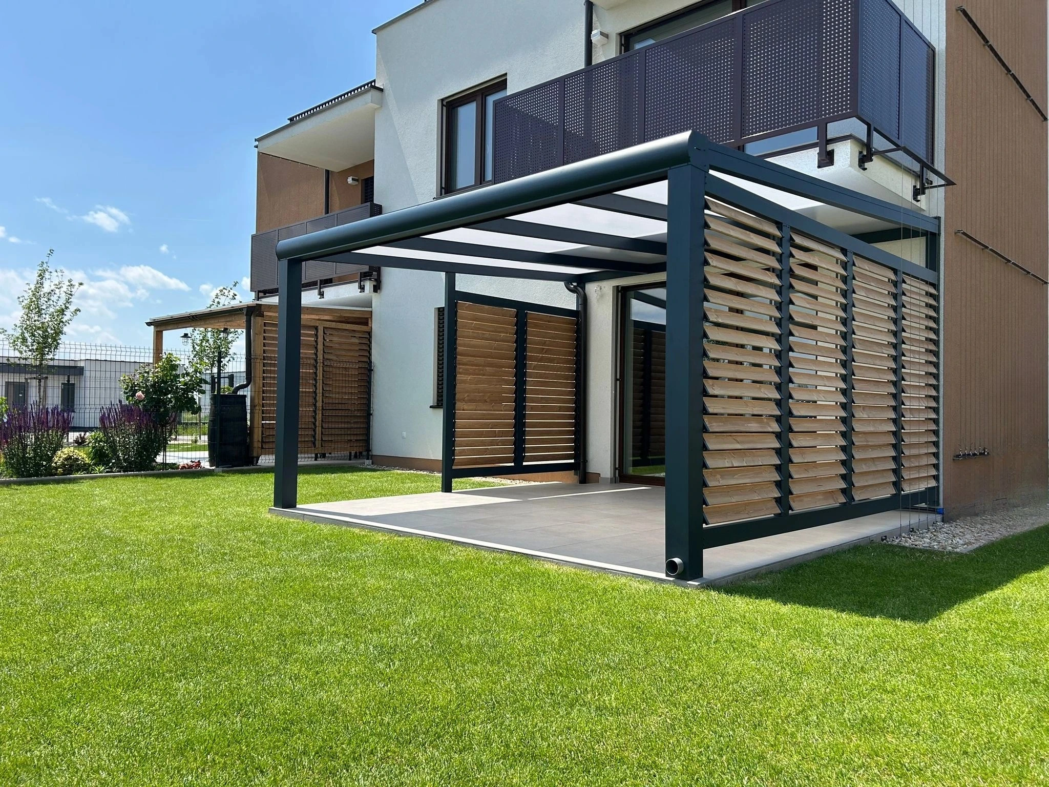 Elegantné profily, trvácny povrch a minimum údržby. Pergolu môžeme dodať s integrovaným tienením – otočné žalúzie (slnolamy) ktoré sú súčasťou projektu a montáže. Alternatívne pergolu predpripravíme (kotviace body, elektro) na rýchle doplnenie neskôr. Hliníkové pergoly navrhujeme s dôrazom na stabilitu a detail – od farby až po napojenie na fasádu.