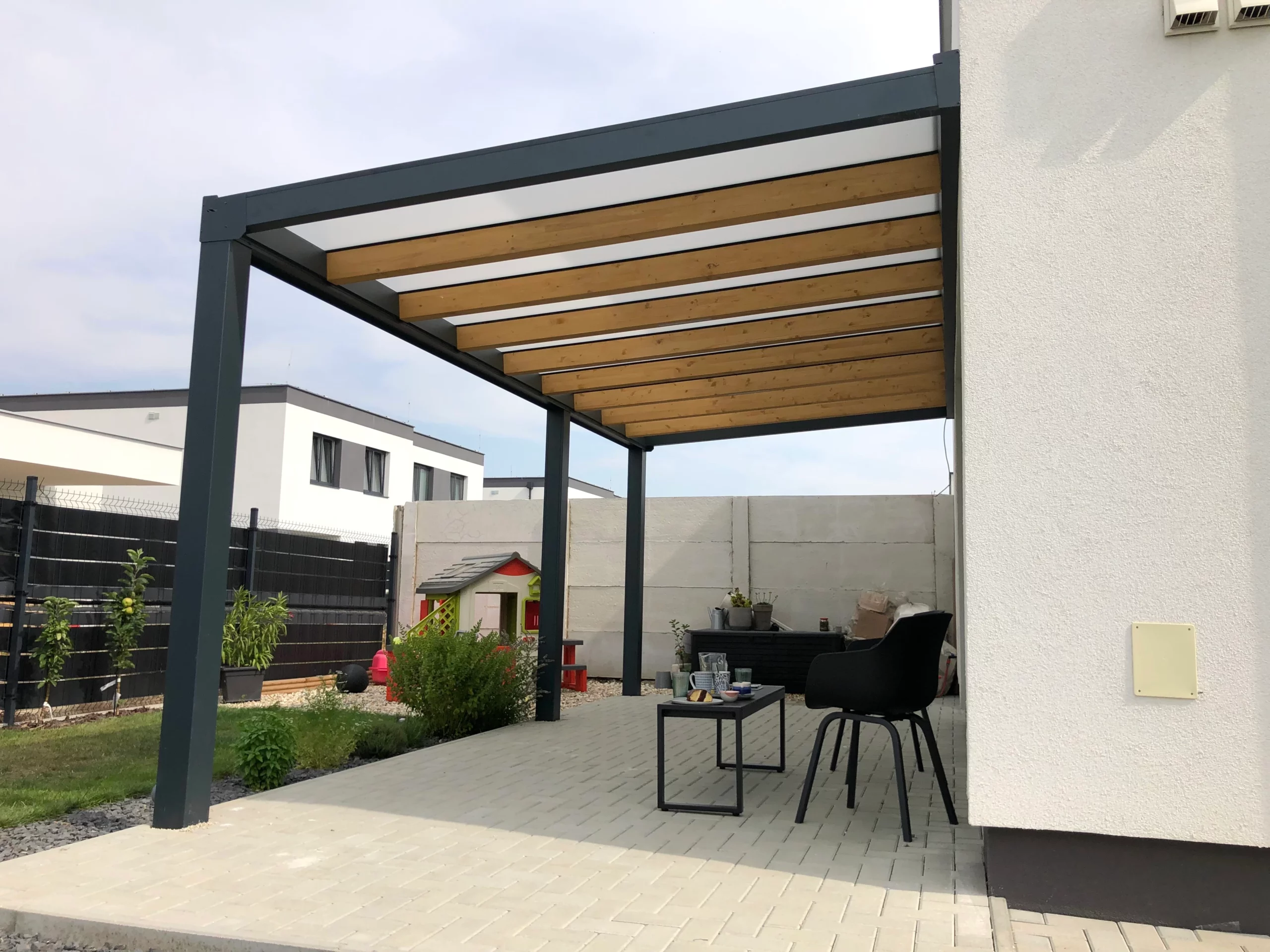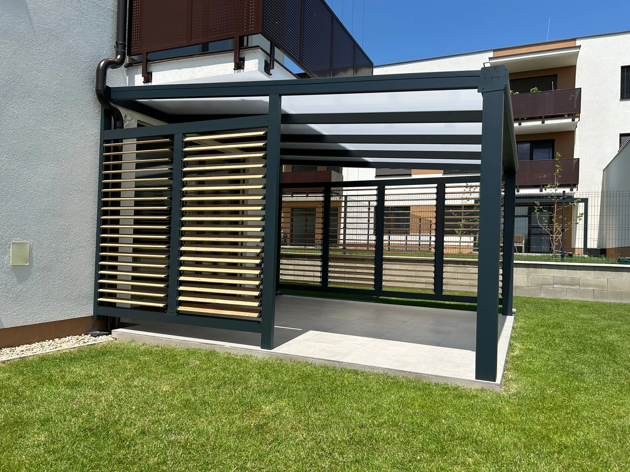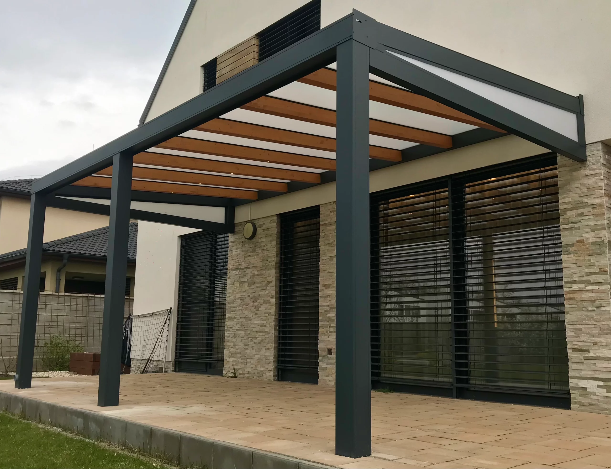 Elegantné profily, trvácny povrch a minimum údržby. Pergolu môžeme dodať s integrovaným tienením – otočné žalúzie (slnolamy) ktoré sú súčasťou projektu a montáže. Alternatívne pergolu predpripravíme (kotviace body, elektro) na rýchle doplnenie neskôr. Hliníkové pergoly navrhujeme s dôrazom na stabilitu a detail – od farby až po napojenie na fasádu.